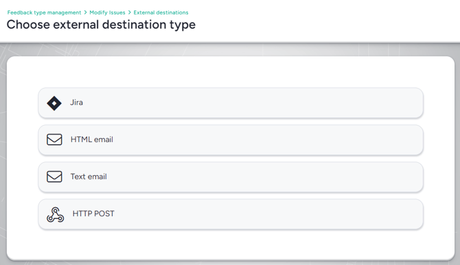 As with all Feedback External Destinations, your new Jira integration is triggered by submitting feedback with a chosen Workflow Status. Once you have an External Destination configured for your Feedback Type, Workflow will include a new column for choosing when to trigger your integration. Simply access your Feedback Workflow, scroll to the appropriate Team block(s), and select your new Jira integration for the desired Status.