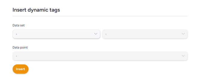 - Under Dynamic Tags, select the Data Set and subsequent Item you want to inject. Commonly used fields are found under Feedback Type, Submitter User Account, and Web Services. Important Note: use any Dynamic Tags with a "Plain Text" to prevent HTML being sent over.