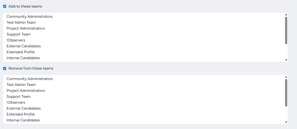 Remove from These Teams: Removes each user the macro runs against from the selected teams.