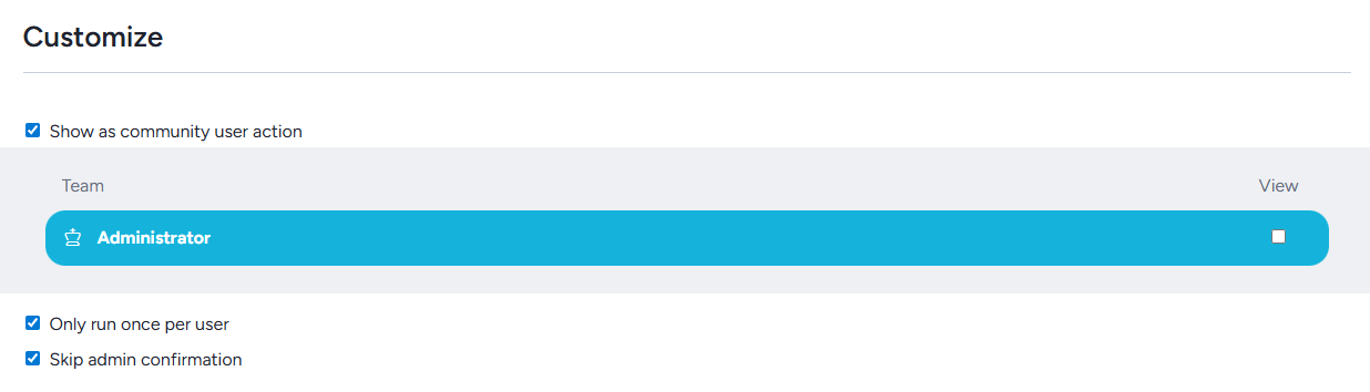 Show as Community User Action: When checked, this macro appears as an available action in User Resources. Uncheck it to keep the macro available for automation and schedules only, without surfacing it as a manual action.