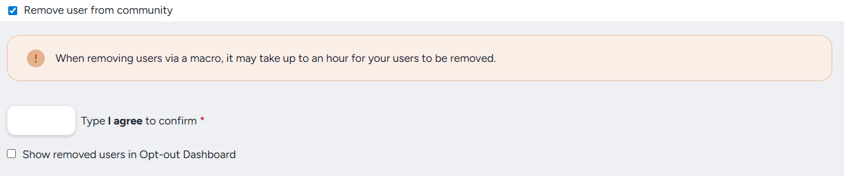 Show Removed Users in Opt-out Dashboard: When checked, users removed by this macro are logged in the Opt-out Dashboard. Enable this if you want a record of macro-driven removals alongside other opt-out activity.