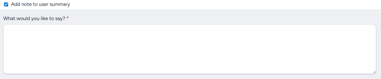 What would you like to say?: The note text to add to each user's summary.