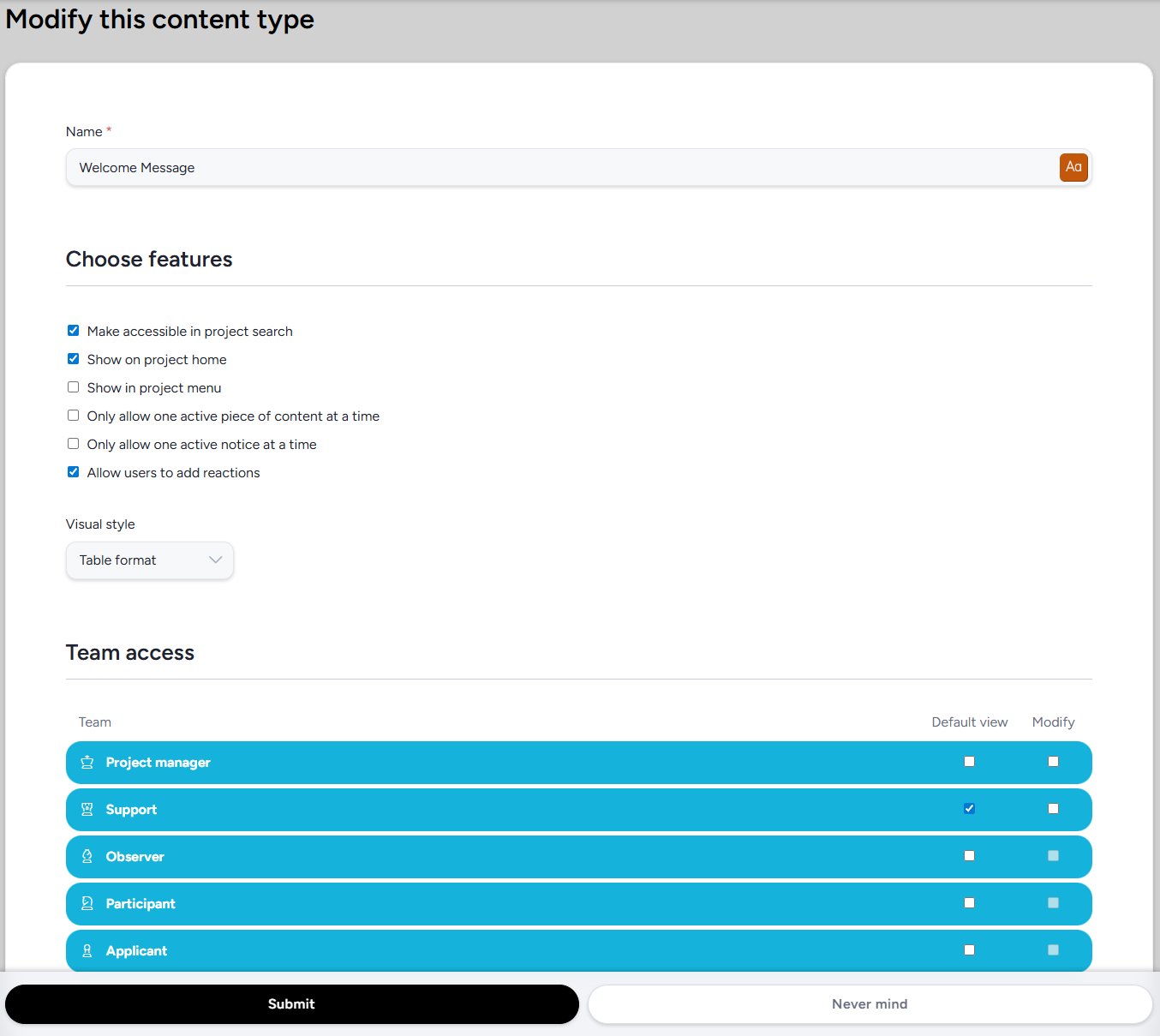 💡 Ted Tip: Enabling Show on Project Home or Show in Project Menuat the content type level doesn't mean every piece of content within it will be visible to every user. View access can still be controlled on individual pieces of content, so you can show some content prominently while keeping other pieces restricted to specific teams.