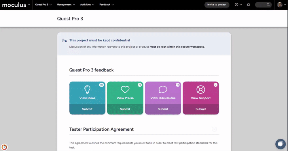 The next step is to insert the embed code into the Centercode resource of your choice. Typically, this will be Content or Releases. In this example, we’ll insert the Loom recording into project-level content.