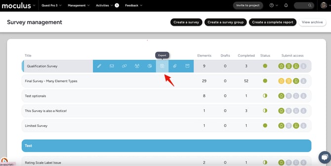 - Navigate to the Management page for Surveys, Profiles, or Feedback types