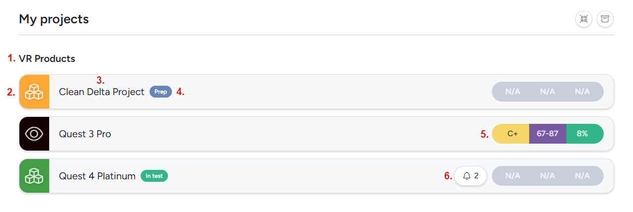: Allows for project-specific configurations (releases, content, etc) and additional navigation sections.Recent Project