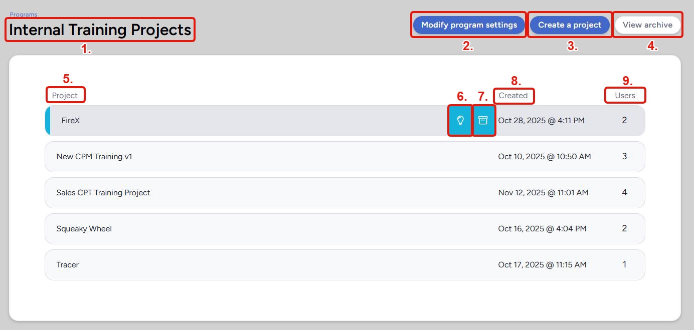 1. [Program Name] Projects: The page title confirms which program you're viewing.