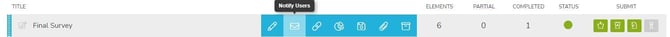 The Notify/Remind feature is available as a hover-over action for appropriate resources - Surveys, Content, and Releases - enabling you to send a quick email (similar to Quick Invite’s template) to the users who have access to your resource. Only those who haven't completed the survey and have access to complete it will be included. The initiating administrator will not be included.