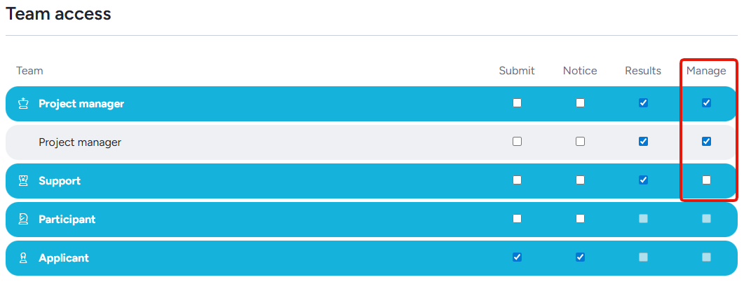 - Make desired changes to the Basic Options and Advanced Options, as well as to Team Access (Notice access is here).