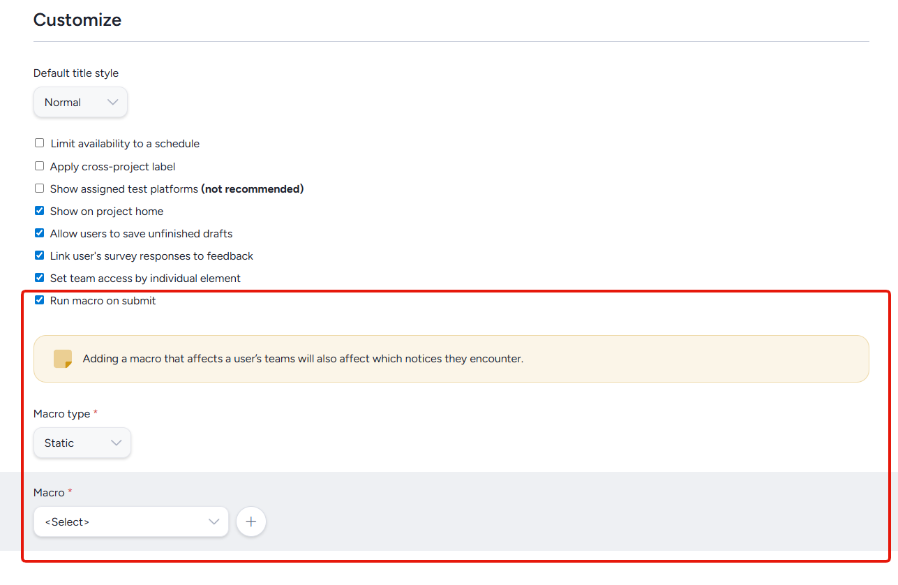 - When creating or modifying your survey, checking on Element Level Access under Advanced Options will allow you to set access rights for each individual Form Element on your survey depending on team type. This is useful if you have questions on your survey that only a particular team should see.