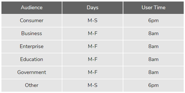 Initial Audience Ideal Messaging Windows: