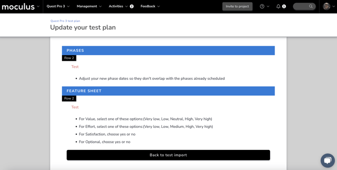 Importing a test plan serves as a convenient method for creating features, phases, and teams within your project. This process streamlines the setup of your testing environment, making it easier to manage and organize your testing activities.