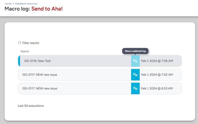If you find that fields in your third-party tracking system haven’t been updated, you’ll want to review the Webhook’s logs to troubleshoot issues. You’re offered the individual Feedback tickets your Macro was applied and their individual Status Code results. Please see this article for Status Code definitions.